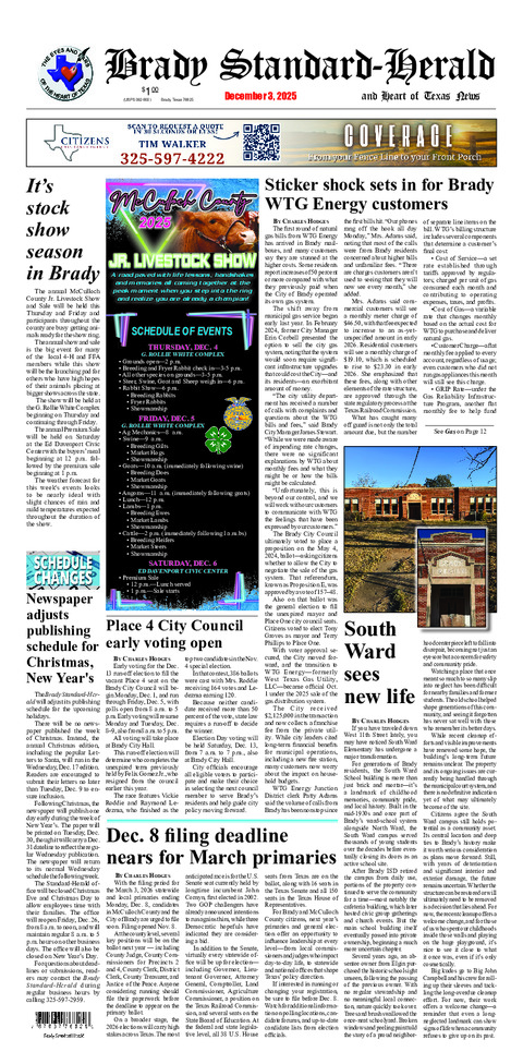 Beginning next week, the Brady Standard-Herald will have openings for both paperboy routes...